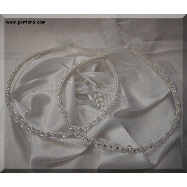 Have your "happy ending" be the start of a wonderful life together, when you wear this beautiful and joyous crowns on your wedding day. These wedding crowns here are delicately created of pure white pearls that go al around to the back of the crowns while in the front the pearl swirls are adorned with Swarovski crystal centers entwined among the pearlized swirls.