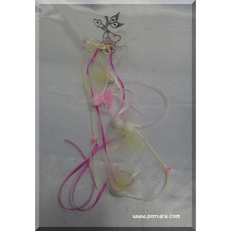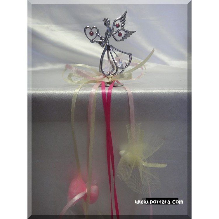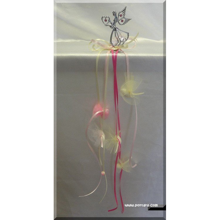 Shown price includes the Angel ornament that is accented with hanging silky satin ribbons of ivory, light pink and fuscia color. Five almonds are wrapped inside ivory and light pink tulle and they are attached to the hanging ribbons along with 2 light pink beads in an unusual way and create a gorgeous and unique color effect and beauty!