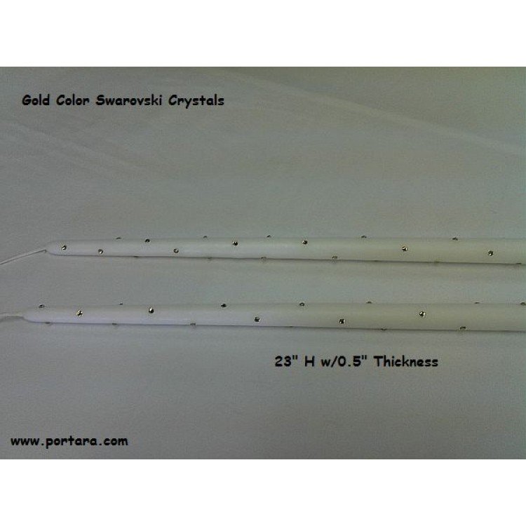 A 24" H candle has over 20 Authentic Clear Swarovski Crystals all around, a 30" H has over 40 pcs and a 36" H has over 60 pcs, depends on the size)