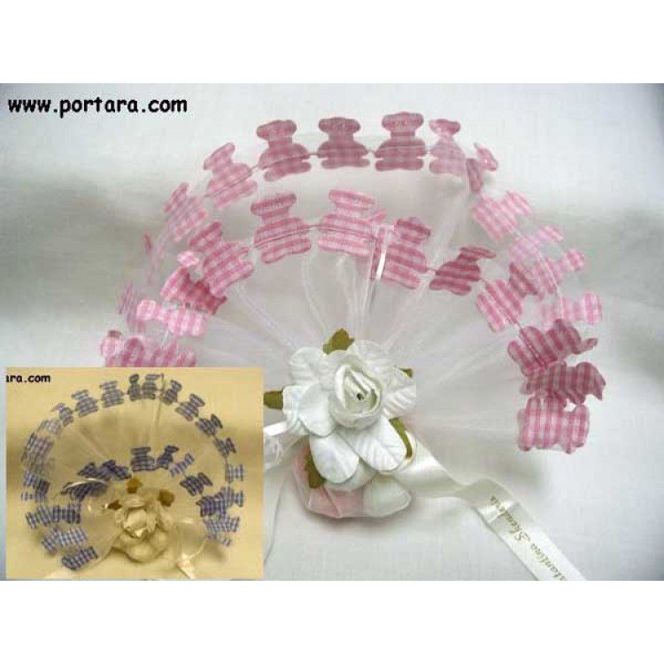 These are nice and high quality organdy circles with fancy silky satin gingham Teddy Bear design border. They are stiff and when they are filled with confetti, they would create a nice design and stay in place. It can stand by itself nicely due to its stiff edge or you can attach it to the favor you already have.