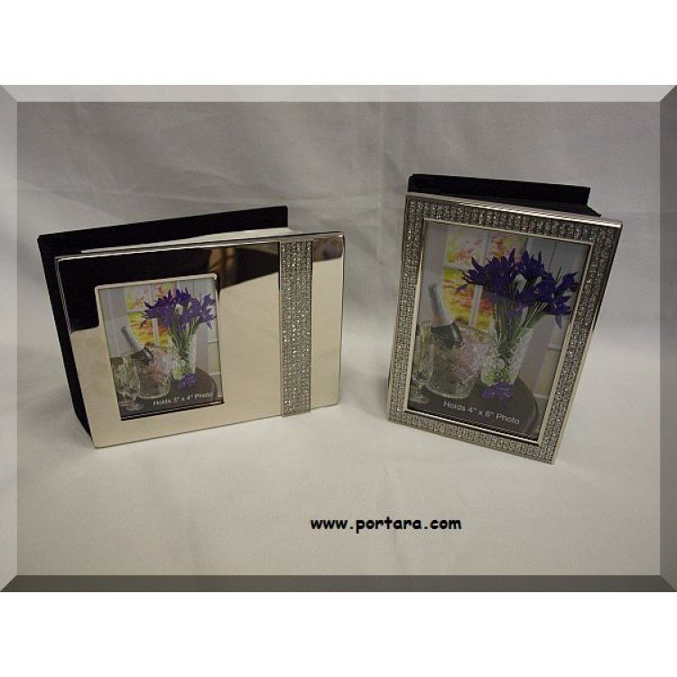 Glitter Vertical and Horizontal Photo Albums. Both Albums are non-tarnish nickel plated and each one Holds 80, 4" x 6" photos on acid-free pages.