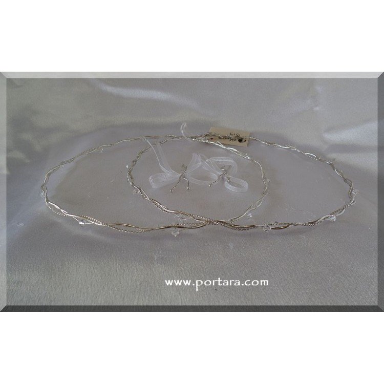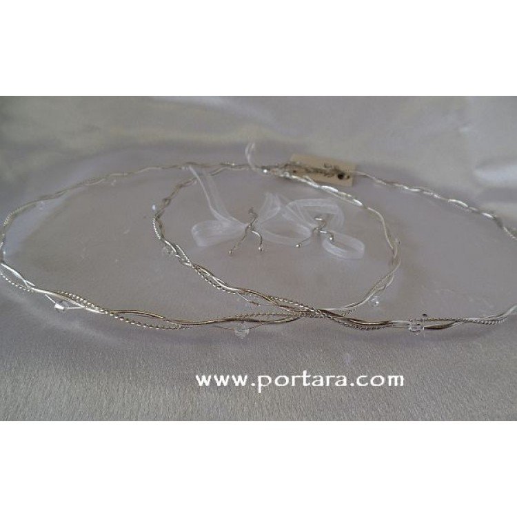Highly skilled Greek craftsmen have created this pair of wedding crowns here that features Silver of 925 Degrees with Swarovski crystal prisms that add clear transparent radiant colors in between the silver wires.